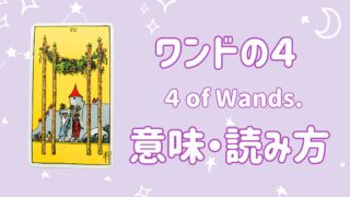 タロットカード「ワンドの4」の意味を正位置・逆位置に分けて解説。恋愛・相手の気持ち・人間関係・仕事・金運まで初心者にもわかりやすく紹介します。達成・祝福・安心がキーワードのカードです。