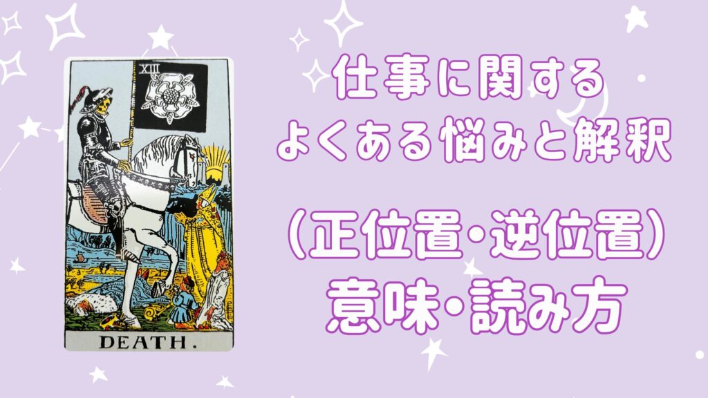 仕事と死神のカードは、「転換期」「仕切り直し」というテーマと非常に結びつきやすく、今の働き方に迷いがある人に多く出やすいカードです。