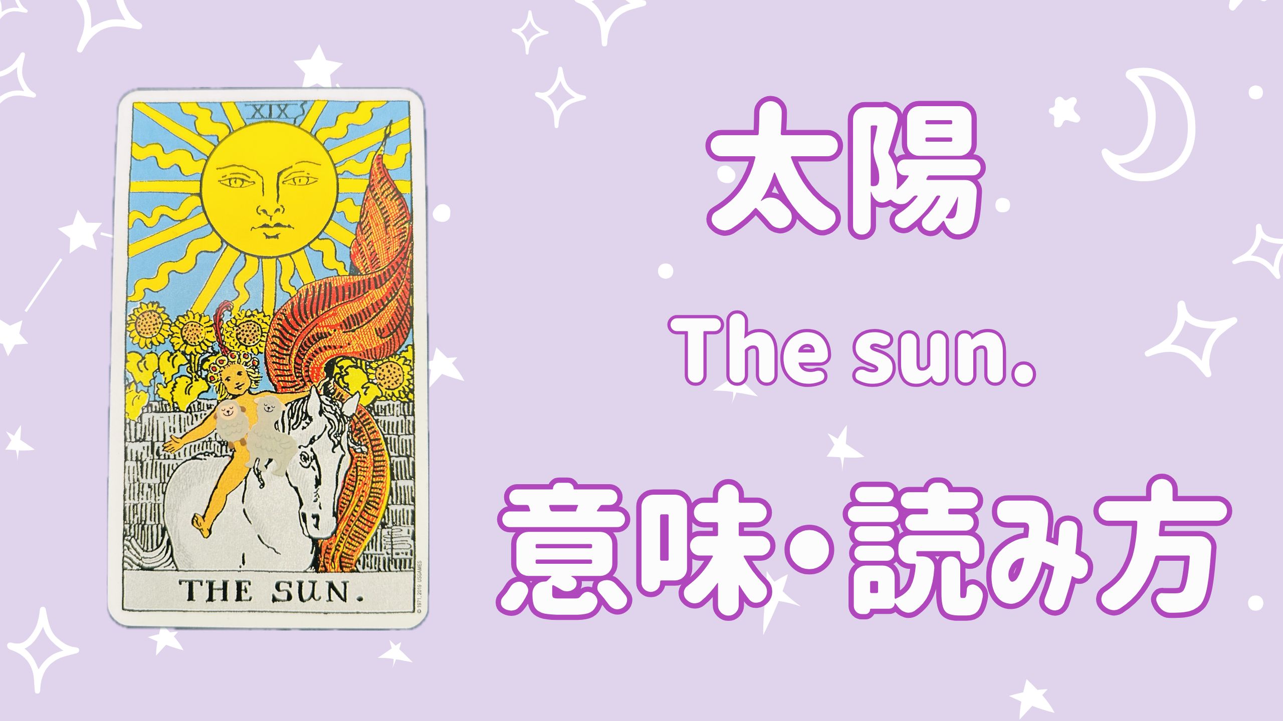 月のカードが“曖昧さ・不安・無意識”を表していたのに対し、太陽ははっきりと見える現実・公になる結果を示すカードです。